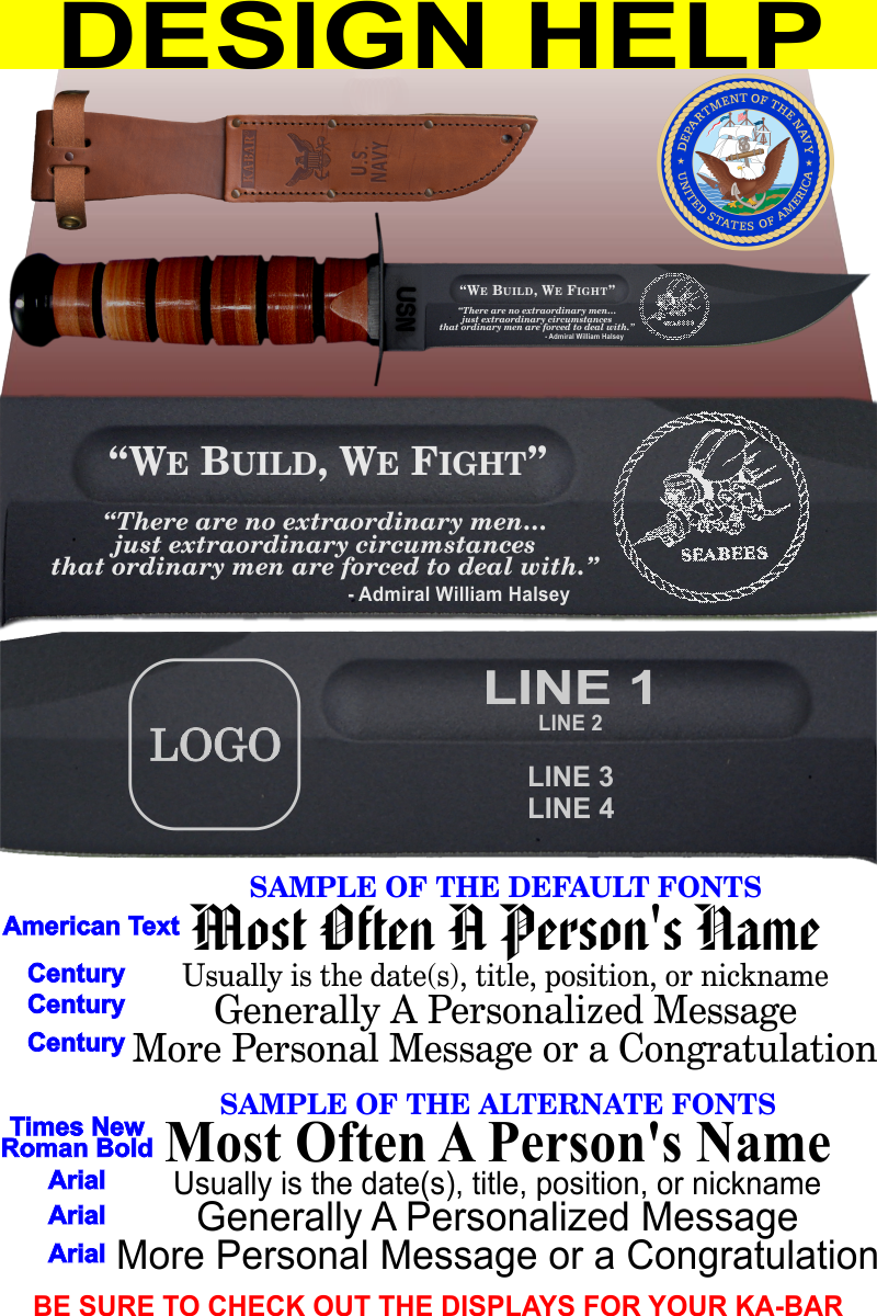 This special Commemorative US Navy KA-BAR Utility/Fighting Knife can be ordered for yourself or in Special Recognition of your friend, relative, or co-worker.Â