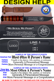 You can have up to 4 lines of engraving and/or select a Logo from our extensive Library.  Or you can even upload your own Logo and we will convert it to a single color for the Laser Engraving (no design charges).Â